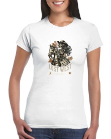 LOST WEST WESTERN WOMAN SKELETON RIDING A HORSE