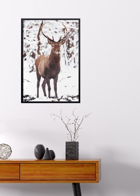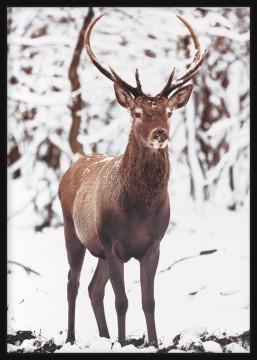 Red Deer in Winter Forest