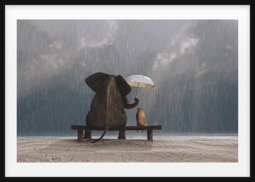 Elephant And Dog Sitting In The Rain