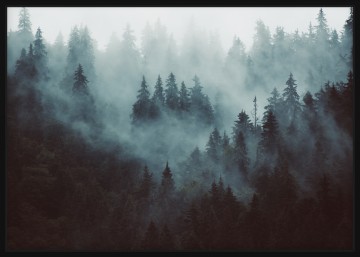 Moody Forest Trees Covered In Fog